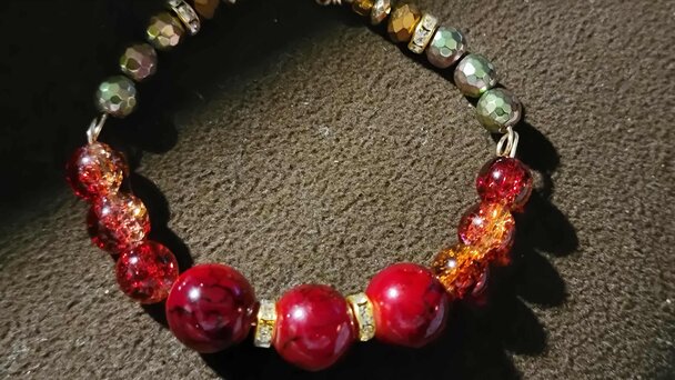 The Orange & Red Earring and Bracelet Set features a vibrant combination of colors perfect for any occasion.