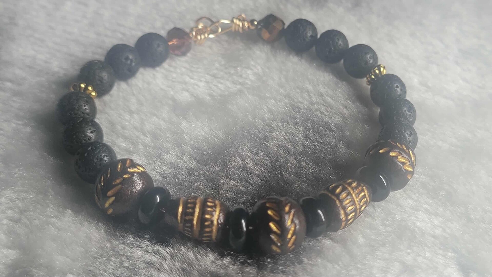 Mens CopperBrown & Gold Beaded Braclet with a touch of Gold with Bling OCJ