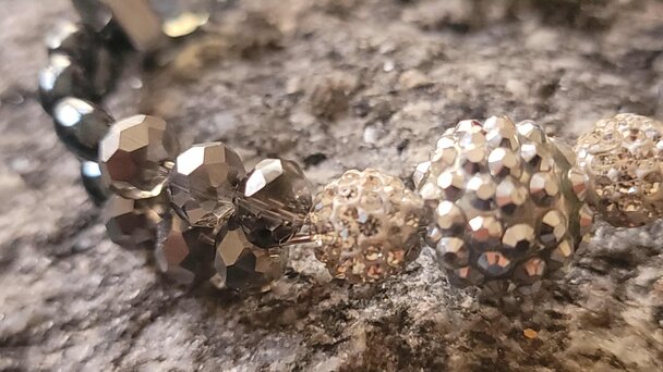 Mens Gold and Light Brown Beaded Bracelet with a touch ofGold with Diamond Bead Bling OCJ