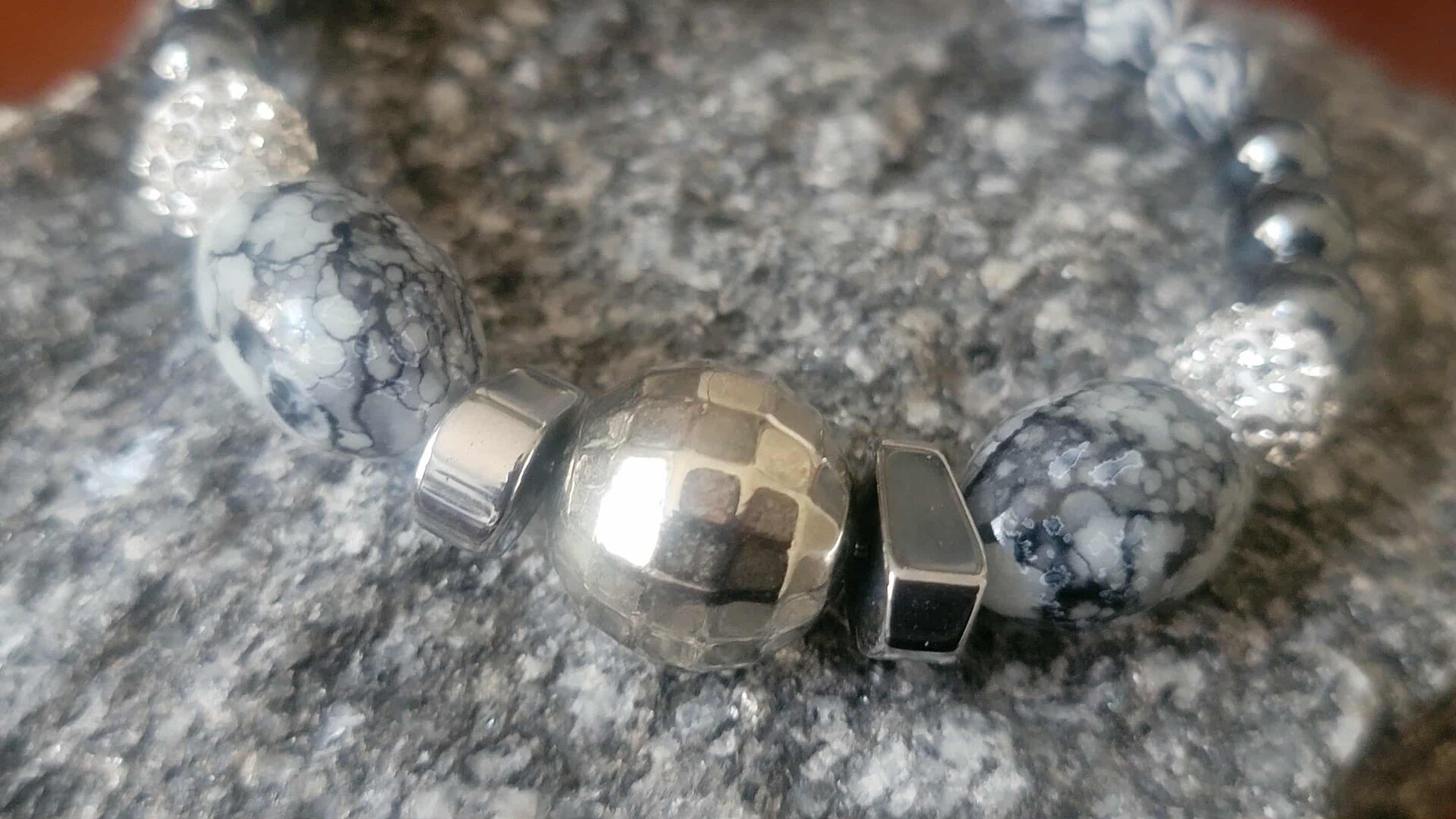 Mens Silver Copper with Grey flat Stone with a touch of Grey and Silver Beads OCJ